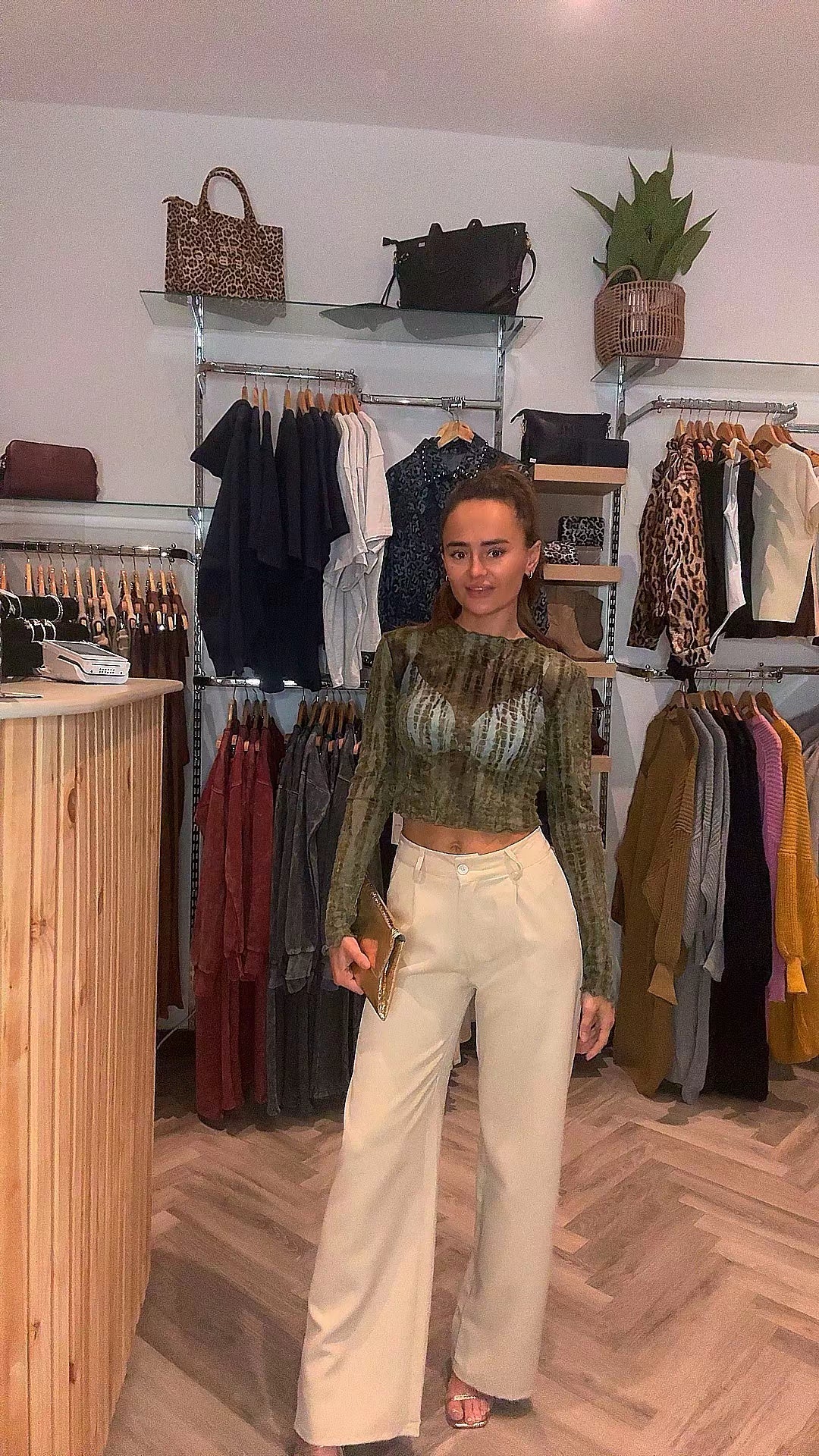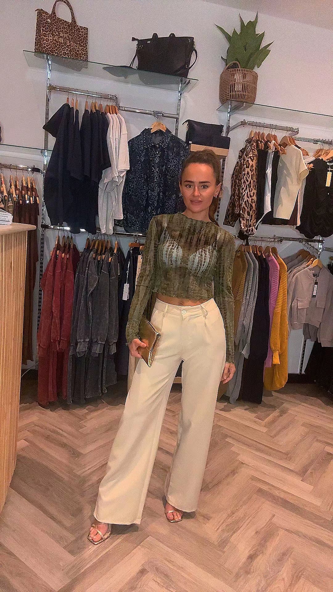 Abstract mesh top, this abstract mesh top offers a touch of glitz and glam, making it the perfect addition to any brunch outfit. The unique design adds a playful yet sophisticated element, perfect for those seeking a statement piece. Allow yourself to stand out in style with this trendy top.