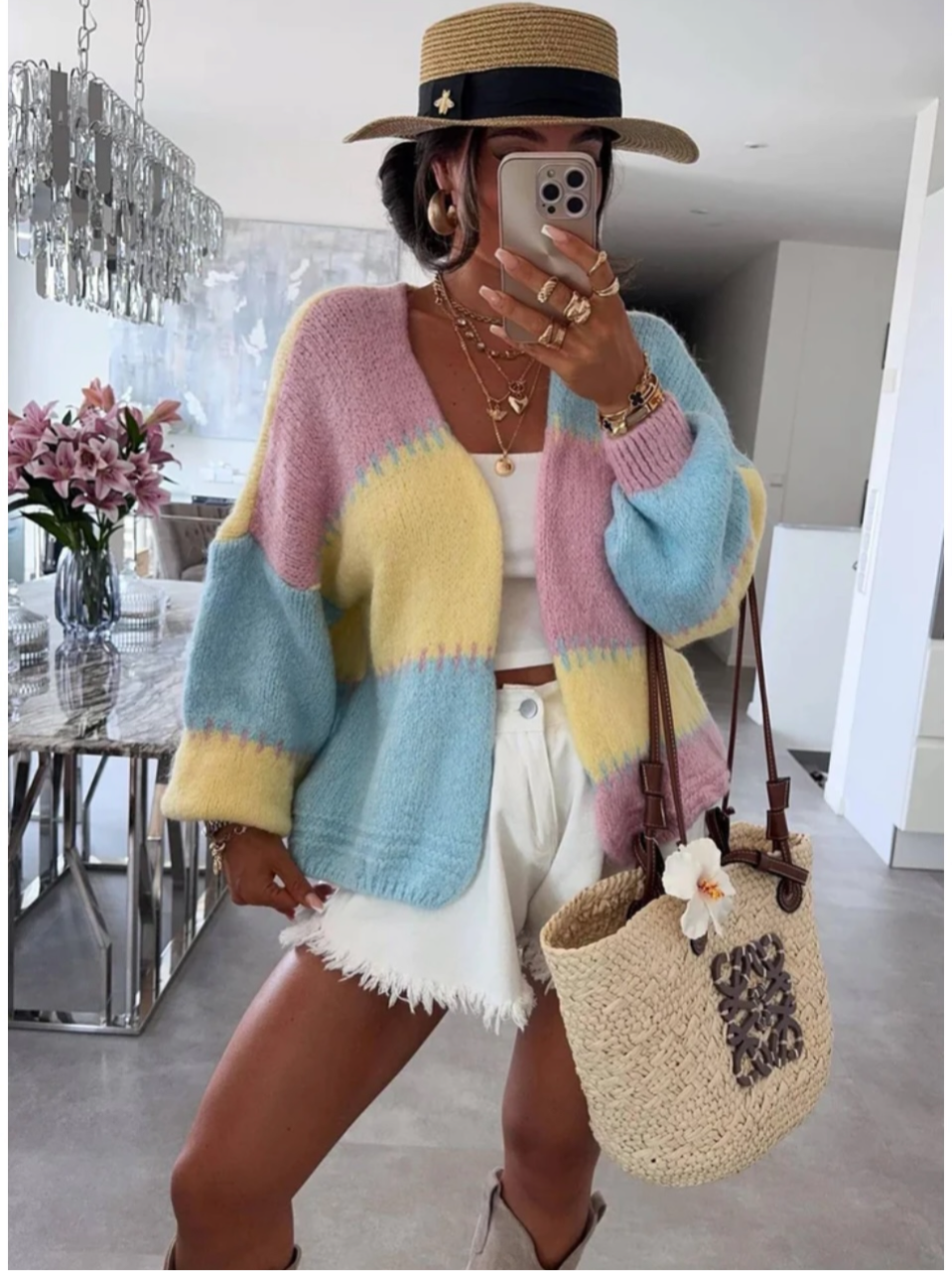 Upgrade your wardrobe with the Bella Knit Cardigan. Made from chunky knit fabric, this statement piece is both stylish and cozy. Perfect for adding texture and warmth to any outfit, it's a must-have for fashion-forward individuals. Get yours today!Bella chunky knit cardigan, statement piece wardrobe